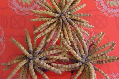 凉山虫草:“虫体”较长。有3-6厘米,表面棕褐色,“虫足”不明显。“草部”细长,有10-30厘米,直径较细,呈黄棕色至黄褐色。少数“草部”顶端有分支。