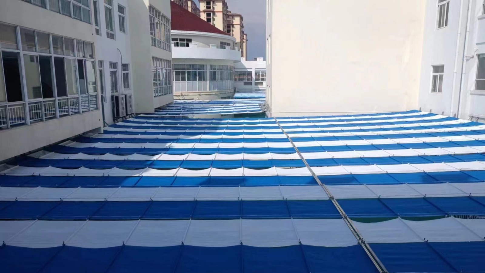山东济南幼儿园操场遮阳帘,山东青岛幼儿园电动