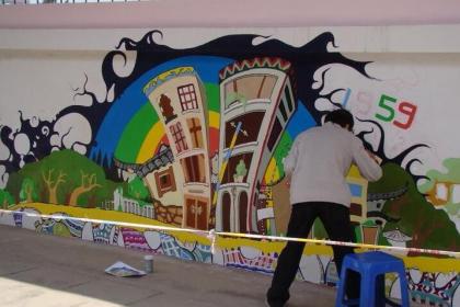 1、绘画型壁画,是指完全运用绘画技巧将构思好的画面表现于墙壁上。具体画法如下: